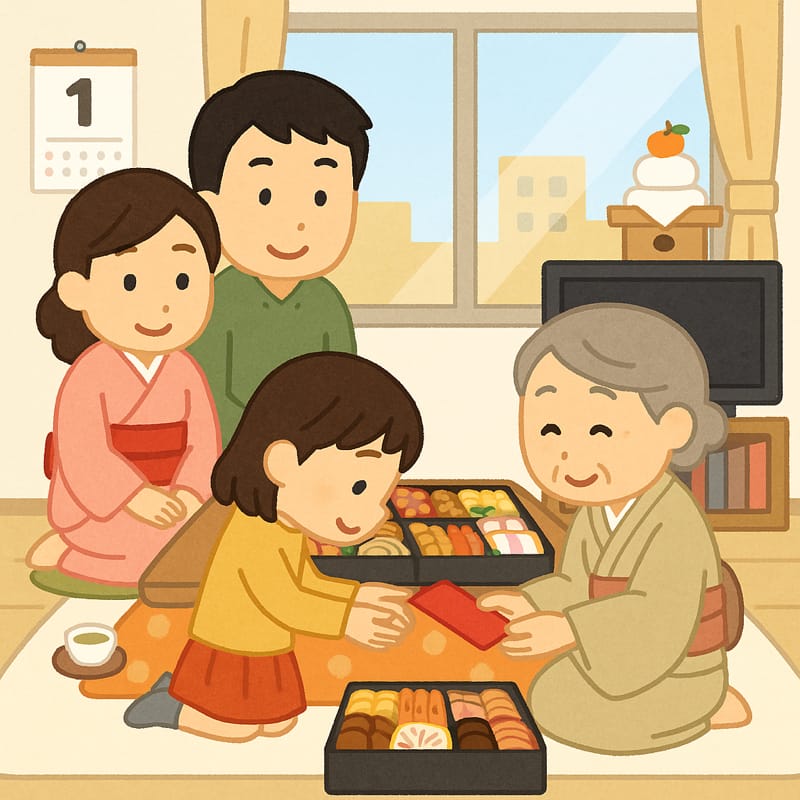 Otoshidama comes from toshigami-sama, the New Year deity. Families once gave rice cakes containing the deity's spirit, life energy for the year. The shift to money happened 60 years ago during Japan's boom.