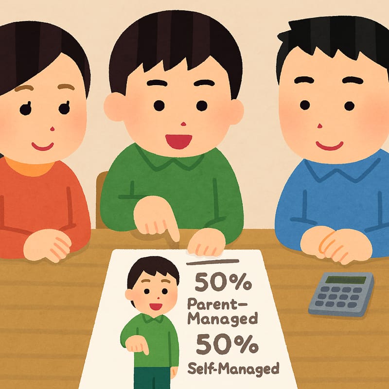 At 12, my parents offered a deal: "Control 20% this year. Show us your plan." I had ¥15,000 total. My ¥3,000 portion went entirely to Pokemon cards in one afternoon.