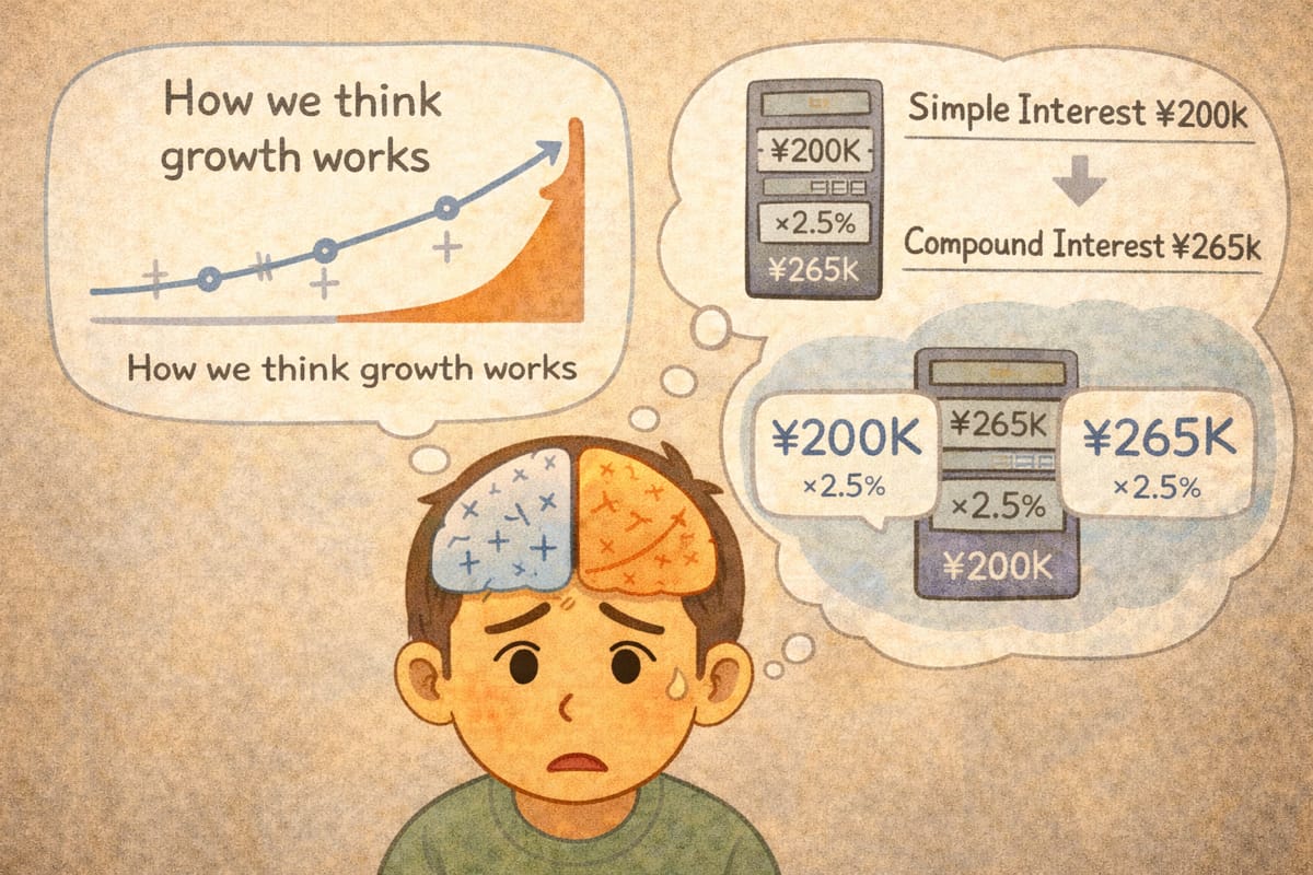 I realized I didn't. Not really. I'd known intellectually that compound interest was powerful. I could recite the formula. But until I saw ¥36 million next to ¥117 million, both from the exact same monthly contributions, I hadn't truly understood what exponential growth meant.